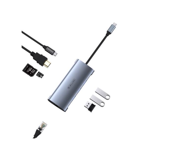 Jellico HU-81 USB-C to USB3.0*3 + SD + TF + HDMI + PD + RJ45 Grey