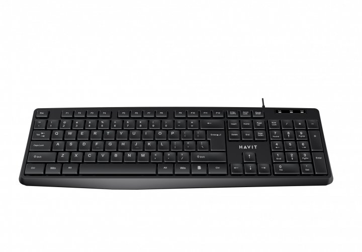 Клавіатура HAVIT HV-KB2006 USB має витончений та ергономічний дизайн, елегантний і красивий. Клавіатура тонка та клавіші мають короткий м'який хід і тихе натиснення. Легко ідентифікуються команди на клавішах.