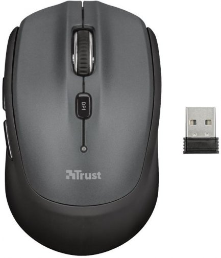 Trust Nona Compact Wireless - мишка бездротового типу для роботи з ноутбуком. Відмінно підійде для виконання офісних справ, домашнього використання та навчання. Чутливість сенсора мишки складає 1600 DPI, тому вона є точною у роботі та підходить для різних задач. Для зміни чутливості передбачена клавіша, яка дасть змогу налаштувати показник DPI від 800 до 1600.