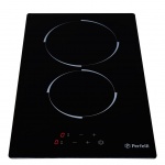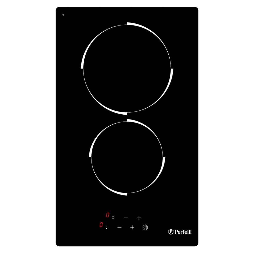 На передній панелі знаходитися дисплей, на ньому висвічується задіяна зона нагріву і рівень потужності, а також можна виробляти зменшення / збільшення потужності нагріву. Електричні дві конфорки мають різний потужність нагріву: велика зона має нагрів в 1.8 кВт, а мала зона підтримує нагрів в 1,2 кВт. Завдяки цьому, ви зможете оптимально розподіляти нагрів під час процесу приготування. Для безпеки встановлений «замок від дітей», при його включенні на дисплеї висвічується відповідна індикація. PERFELLI VH 3101 BL також є індикація безпеки нагріву.